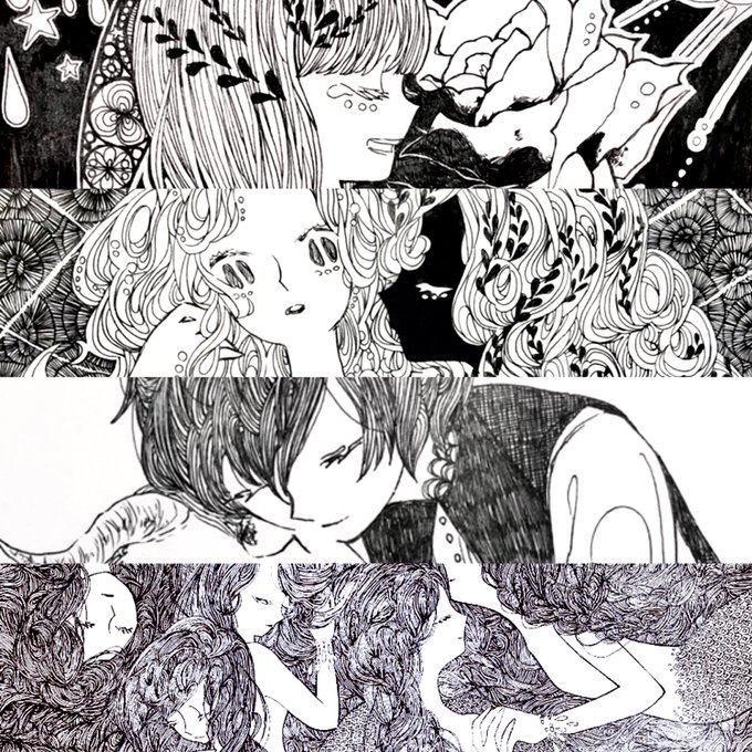 リクエストくださったかた、ありがとうございます! 文字はkakuno、あとはすべて色ボールペンです😘 作業中ずっとPurity Ringの『WOMB』聴いてました。 #SixFanarts