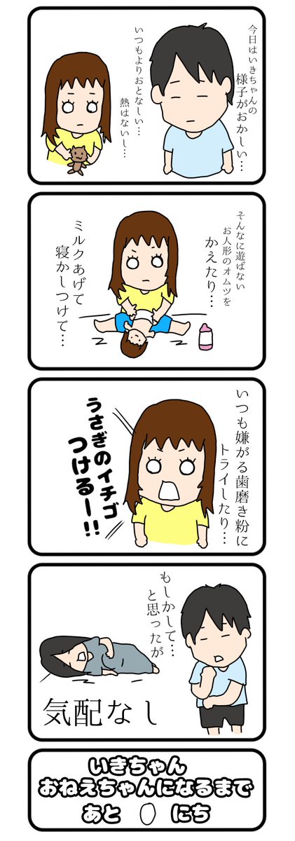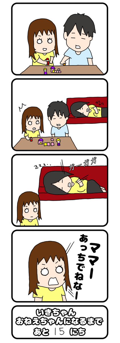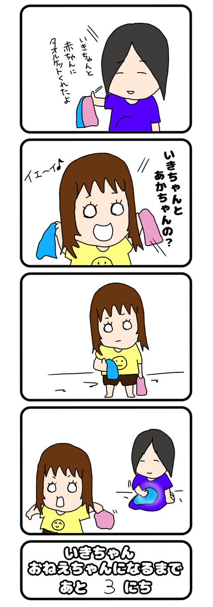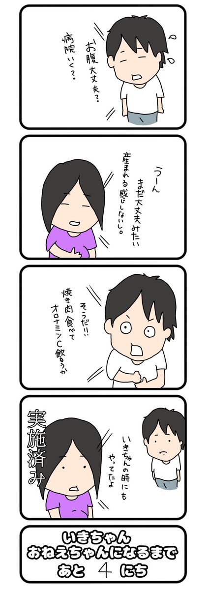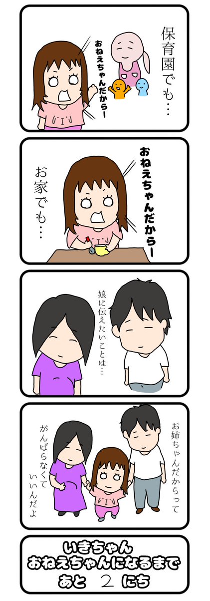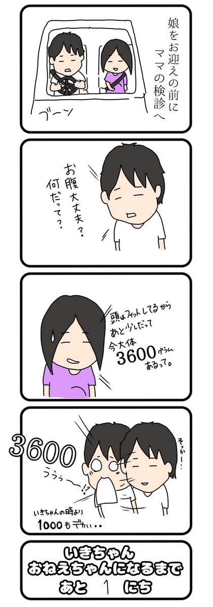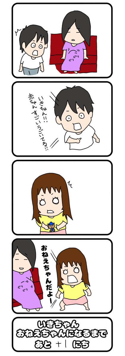 いきちゃん 100日後におねえちゃんになる ~104話~ 昨日検診でしたが… まだ産まれなそう😭 2人目だから早いと思ったのに😓 #漫画 #育児漫画 #子育て #4コマ漫画 #4コマR #四コマ #100日チャレンジ #越えてますが最後までがんばる