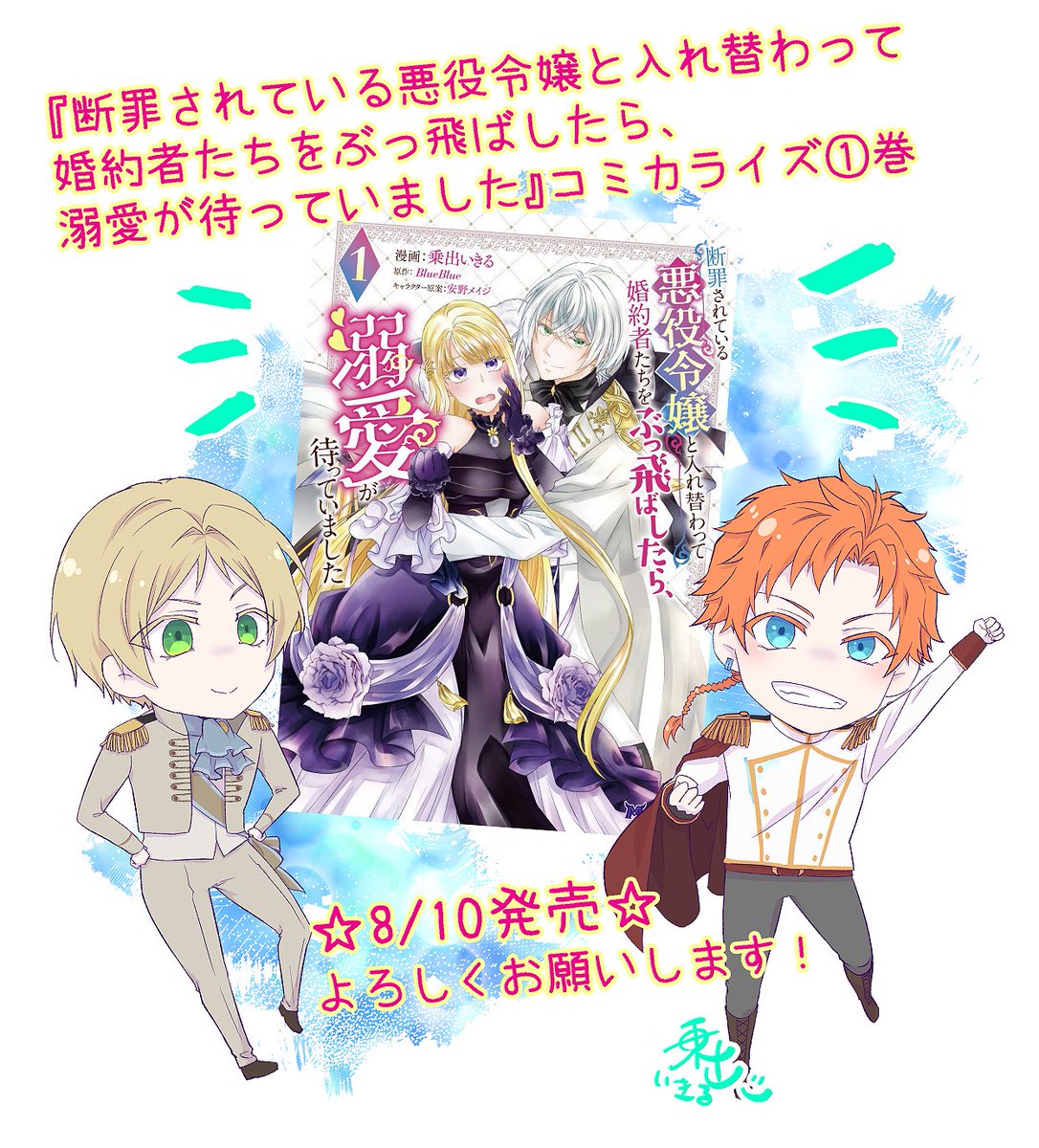 『断罪されている悪役令嬢と入れ替わって婚約者たちをぶっ飛ばしたら、溺愛が待っていました』コミカライズ①巻は明日8/10発売❣ 裏表紙には幼馴染達の中からオレステとラウリスが✨ 書店で電子の海で、よろしければお手に取ってみてください🙌