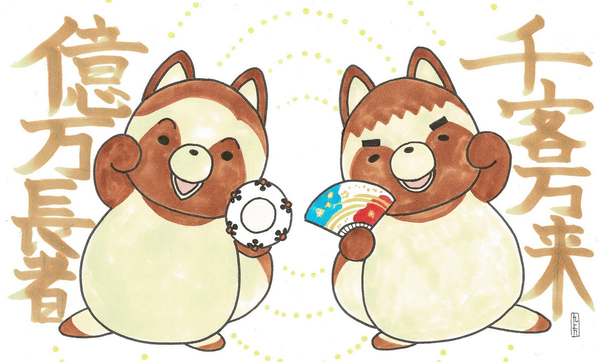 推し絵 『たぬちゃんず(?)とすゑひろがりず』 猫の日だにゃーm(=・ω・=)m #すゑ絵
