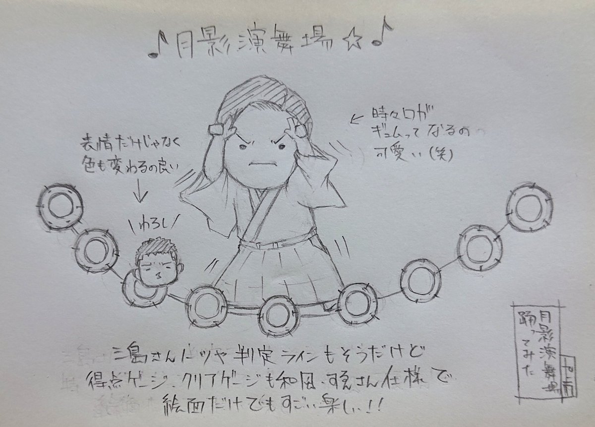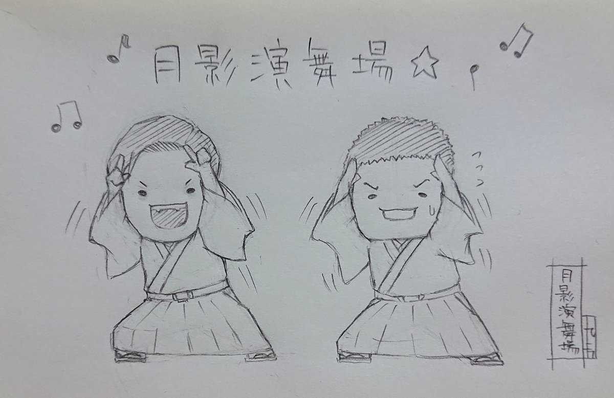 らくがき 『すゑひろがりず』 月影演舞場。 和風替え歌きたー!!!\(゜∀゜)/ 南條さんの伸びやか歌声と三島さんの柔らか台詞が良くて何度も聴いてしまったww 今度踊ってみたもやってほs…ゴフンゴフン。 #すゑ絵