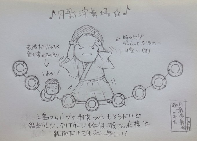 2 24 らくがき 『すゑひろがりず』 月影演舞場。 和風替え歌きたー!!!\(゜∀゜)/ 南條さんの伸びやか歌声と三島さんの柔らか台詞が良くて何度も聴いてしまったww 今度踊ってみたもやってほs…ゴフンゴフン。 #すゑ絵 23/03/20 01:49
