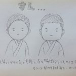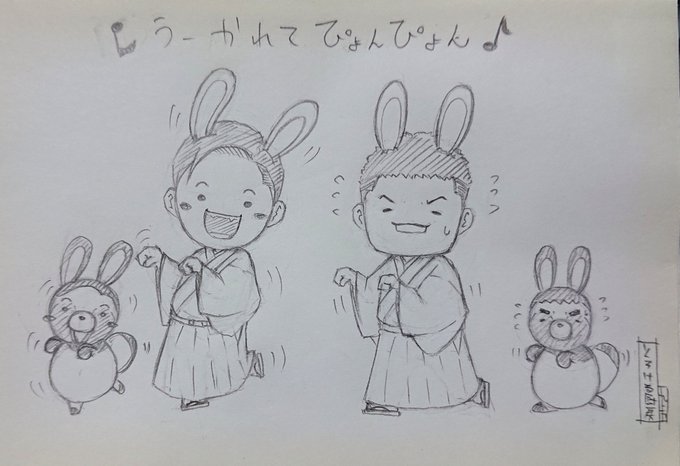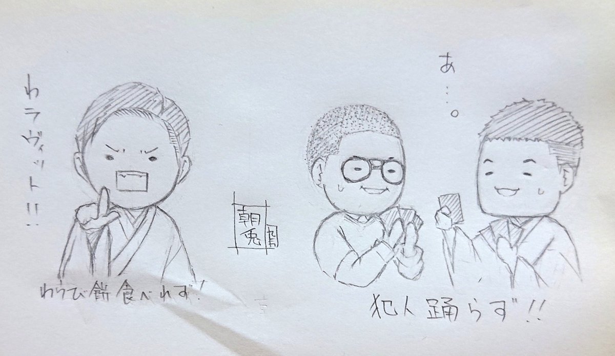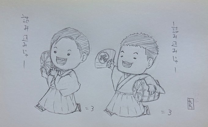 らくがき 『すゑひろがりず三島さんとみしたぬちゃん』 ♪かしーわもち かしわもーち♪ #すゑ絵