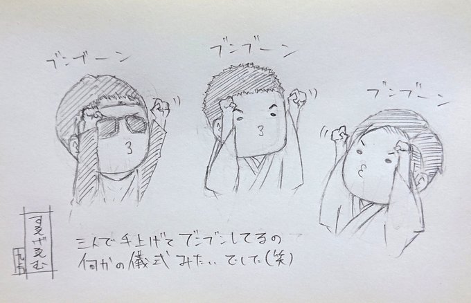 らくがき 『すゑひろがりずとバイク川崎バイクさん』 すゑげゑむ。 お見事でございますー!!✨\(≧∀≦)/✨ 3人でわいわい進めるのもアクシデントも何もかもがとても楽しいゲーム実況ライブでした!!! 一緒にブンブンと輪っか輪っか出来たのも良かったです(*´∀`)♪ #すゑ絵