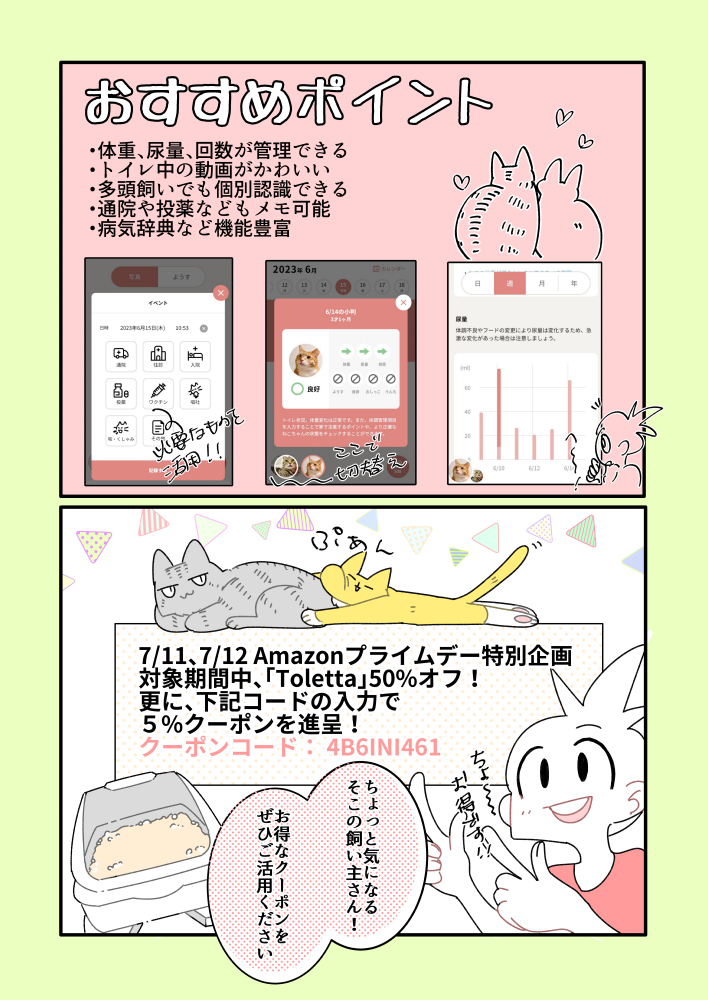 34 62 うわさの尿量などが量れちゃう猫トイレ『トレッタ』の使用レポと #PR🐈⬛🐈 しっかり量れるしトイレ中の動画サイッッッコーーーにかわいいし気が付くとトレッタ確認しちゃってる。便利。 あと半額で更にオフになるって🥳どえれぇこった‼‼ #トレッタありがとう #トレッタ #トレッタデビュー #Toletta 23/07/11 12:00