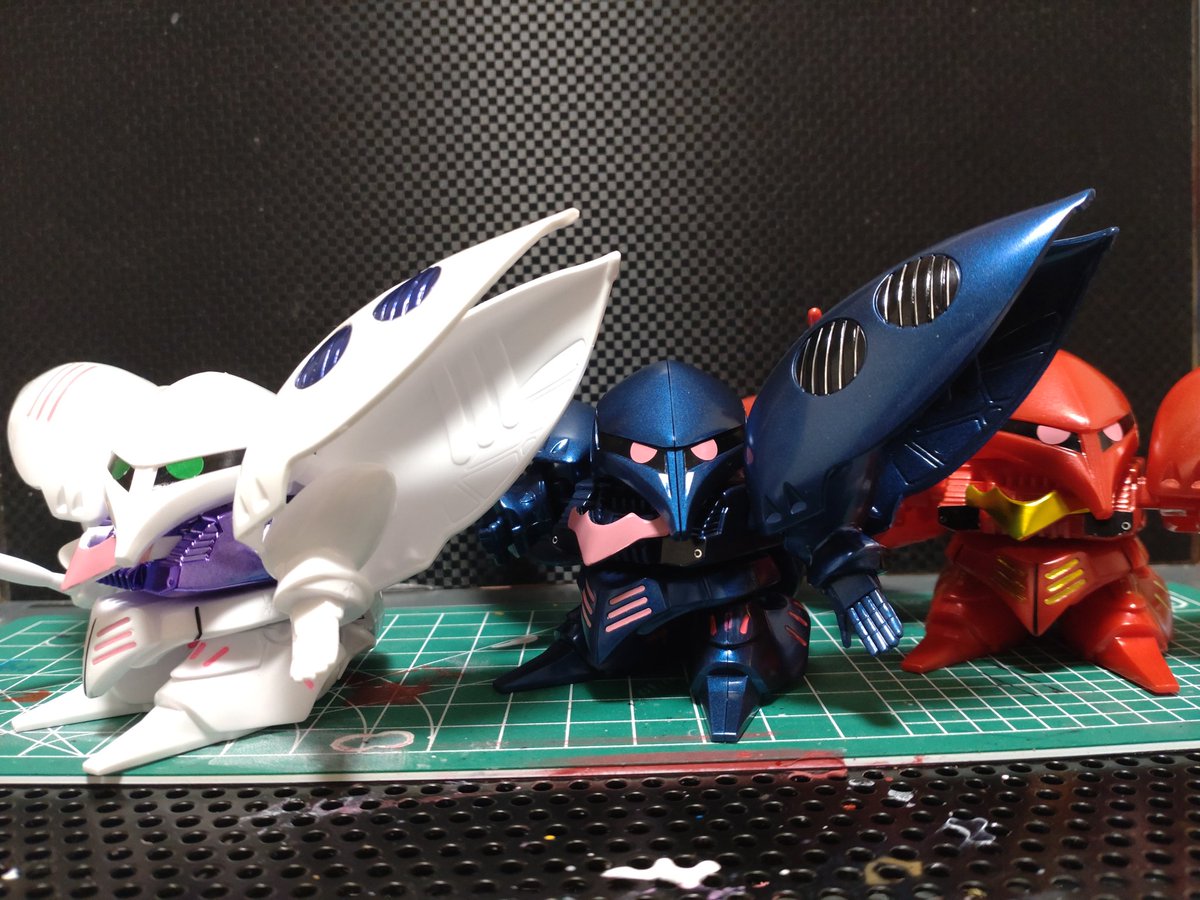 キュベレイトリプルコレクションできた〜。プルとプルツーのキュベレイ光沢あってよいすな!3機そろうと横幅すご… #ガンプラ #SDガンダム