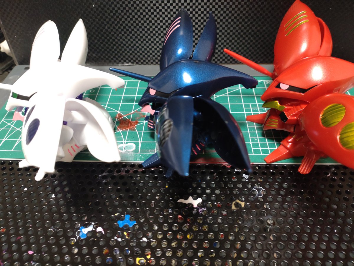 4 24 キュベレイトリプルコレクションできた〜。プルとプルツーのキュベレイ光沢あってよいすな!3機そろうと横幅すご… #ガンプラ #SDガンダム 22/10/23 22:26