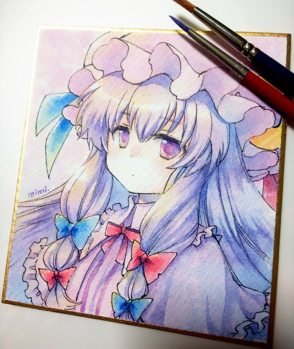8 44 #深夜の真剣お絵描き60分一本勝負 1日遅刻の水彩パッチェさん😭🙏 #パチュリー・ノーレッジ #東方project #透明水彩 23/02/02 23:08