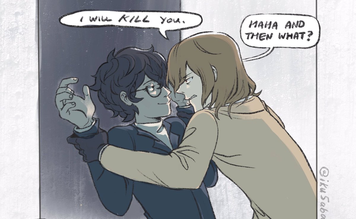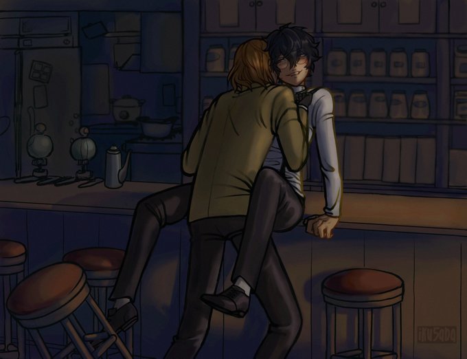cw suggestive / you’re home awfully late happy 10/24 :’) #akeshu #shuake #goroakechi #akirakurusu #persona5