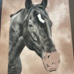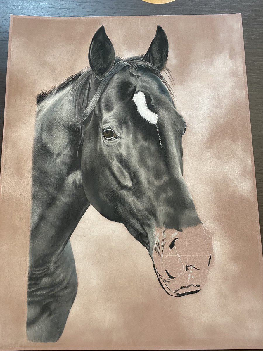 テンポイント。 完成しました。やっとマスキングを外し、日中の自然光の下で撮れました。 でも、やっぱりiPhoneのカメラでは繊細さが出ないのが残念😭私が生まれる前の名馬ですが、その存在感と最後は今も競馬史に強烈に残っている馬だと思います。 生産牧場は廃業されてしまったようで、残念です。