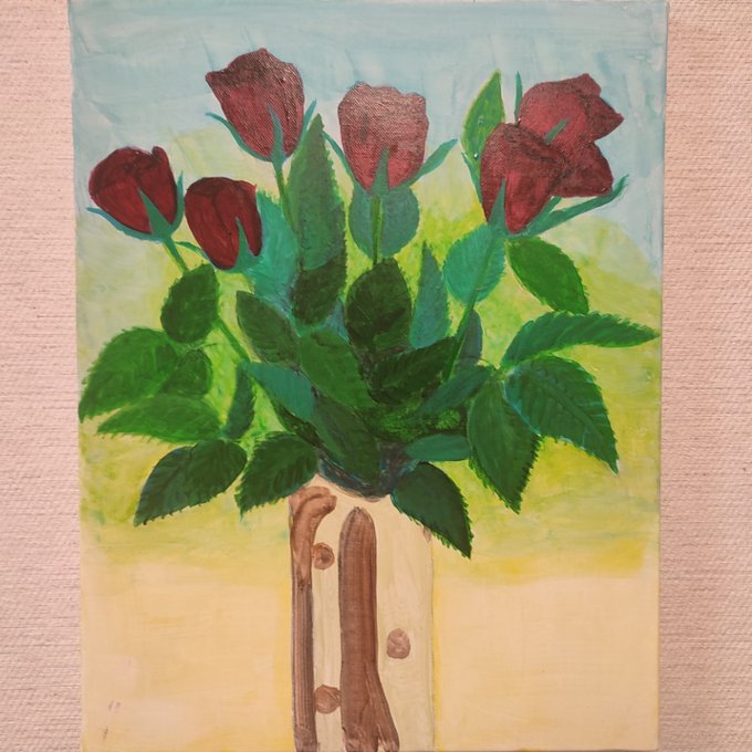7 118 #illust #illustration #art #paintings #美術 #芸術 #絵画 #イラスト #アナログ F6キャンバス アクリル絵の具 薔薇 22/06/11 19:31