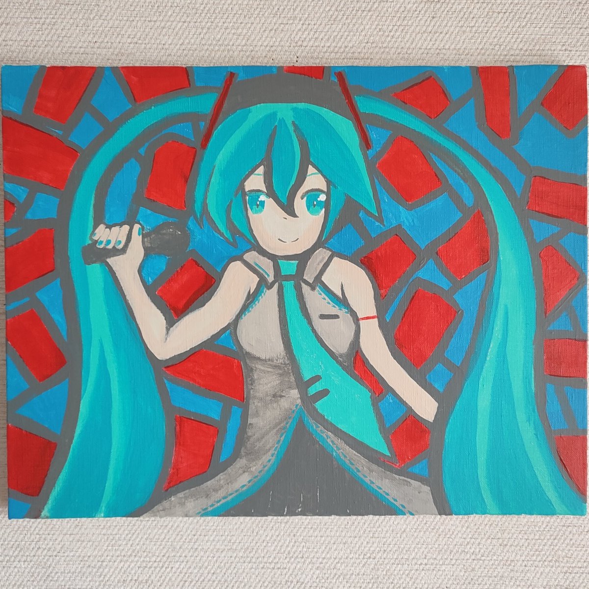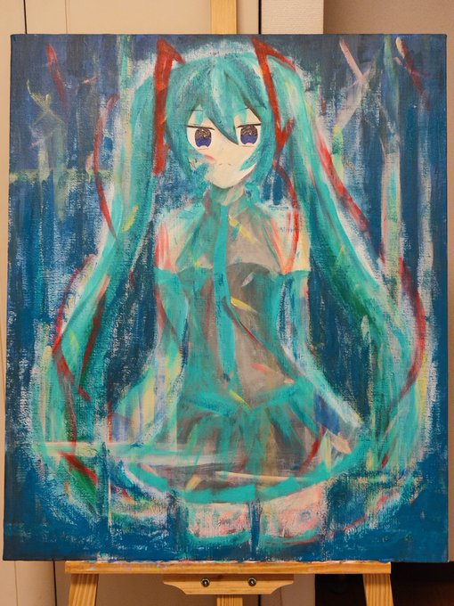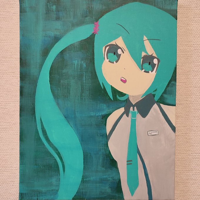 ミクさん F6キャンバス アクリル絵の具 #illust #illustration #art #paintings #美術 #芸術 #絵画 #イラスト #アナログ #初音ミク