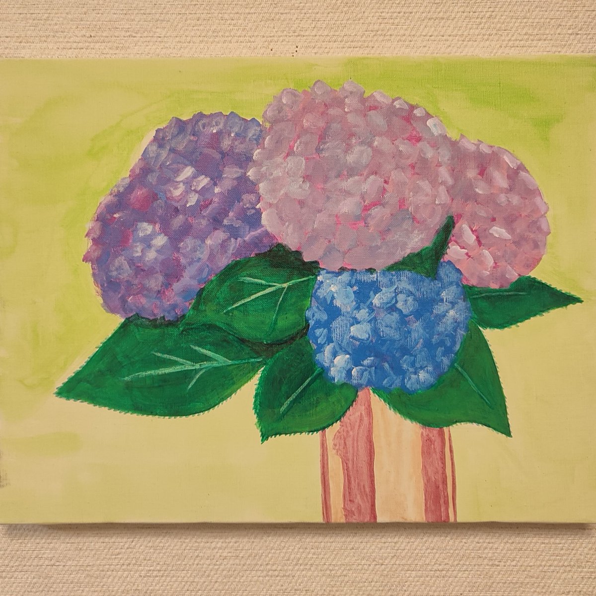 教室で描いた紫陽花 F6キャンバス アクリル絵の具 #illust #illustration #art #paintings #美術 #芸術 #絵画 #イラスト #アナログ
