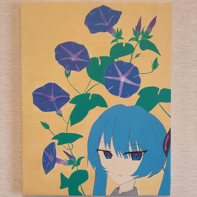 4 67 朝顔にミクさん F6キャンバス アクリル絵の具 ボールペン 鈴木其一の朝顔図屏風と、 さつき が てんこもり さんの ネクストネスト (Magical Mirai 10th edit) を引用しアクリルで仕上げました。 #illust #illustration #art #paintings #美術 #芸術 #絵画 #イラスト #アナログ #初音ミク 22/07/01 16:53