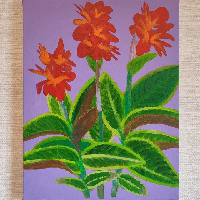 カンナ F6キャンバス アクリル絵の具 夏の花です。 #illust #illustration #art #paintings #美術 #芸術 #絵画 #イラスト #アナログ