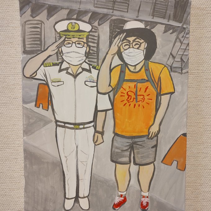 1 69 完成しました! 「艦長とツーショット」 F6キャンバス アクリル絵の具 #illust #illustration #art #paintings #美術 #芸術 #絵画 #イラスト #アナログ 22/08/28 19:57