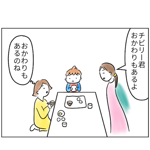 育休4コマ漫画(毎日投稿) 「保育園で初ランチ」 慣らし保育も徐々に進んで、ついに昼ごはん! 最初は親も食べれるみたいでママリーに行ってもらって試食した。 美味しかったらしく、おかわりも自由らしい。いっぱい食べるんやで! #育休 #男性育休 #子育て #1歳 #育児日記 #育児漫画 #4コマ漫画