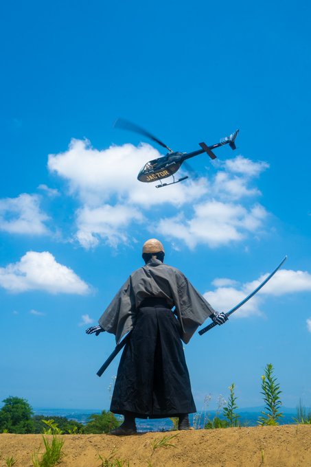 28 145 #カッコイイ剣の構え方 先日のヘリサバでの一枚(ФωФ) 自由に飛行するヘリを見ながらチャンス を待って撮ってもらった(ФωФ) 撮影:腹黒さん(@haragurokikaku) 21/07/27 07:37