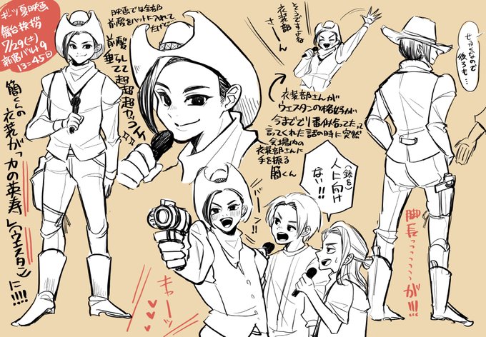 58 187 7/29舞台挨拶 新宿13:45 簡秀吉くんの衣装が劇中のカウボーイ衣装でめちゃめちゃかっこよかった✨✨トークは天然でコーレスしたり話聞いてなくて怒られて罰として歌わされたりして濃厚な舞台挨拶でした。。🦊🤠 #映画ギーツ 23/07/30 22:40