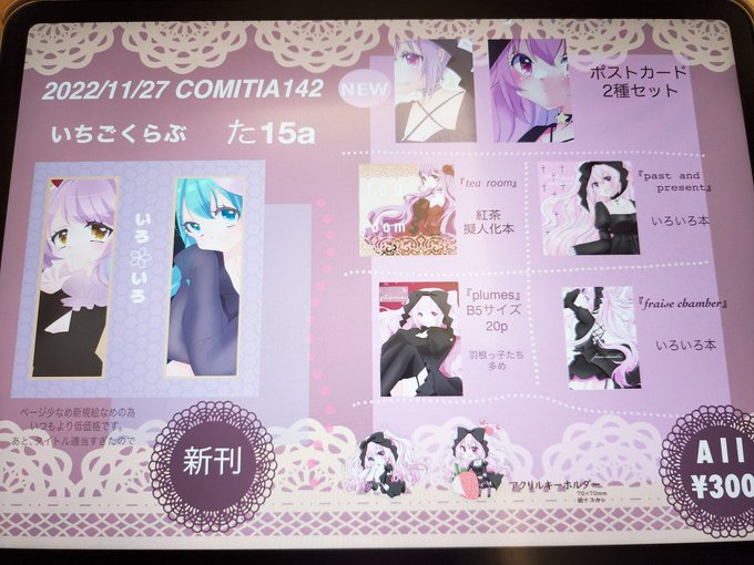明日のおしながきです。全商品300円になります。 よろしくお願いします🙇♂️ 商品お買い上げの方はスケブも受け付けておりますのでお気軽に申し出ください! #COMITIA142 #コミティア142 #コミティアお品書き