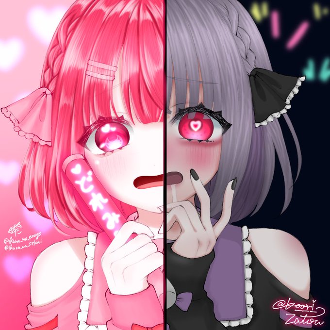 まりあーぬさんの線画塗らせて頂きました!赤があたし、黒紫がお友達です! お友達→@ Koori___Zatou #イラスト #rkgk #イラスト練習 #絵描きさんと繫がりたい #絵柄が好みって人にフォローされたい #落書き