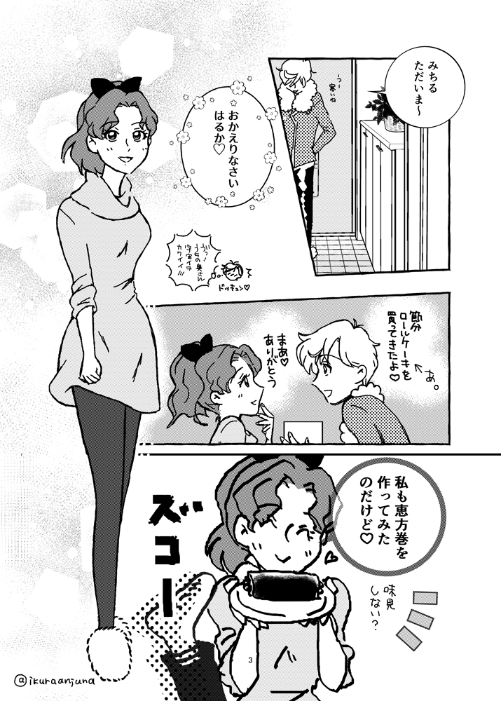 節分おめでとうございます。はるみち節分漫画です。 まだ1ページしか仕上がっていなくてすみません、、😂 下ネタ有り&はるかがおバカなので、イメージ崩されたくない方はご注意ください🙇♂️ 4ページ位になる予定&忘れた頃に描き上がると思います。 #セラムンイラスト部 #セラムンイラスト部カリスマ科