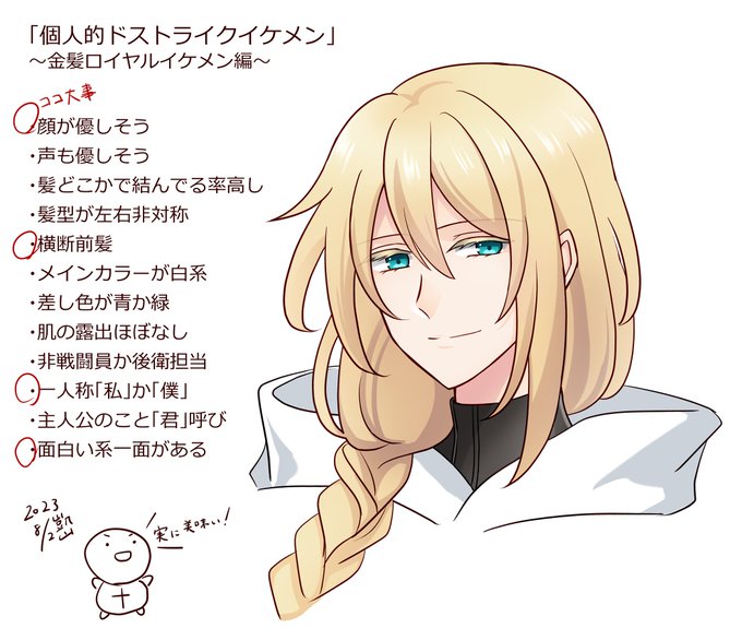 ・冒険大好きです!って感じの前向き主人公 ・金髪赤目 ・性別が曖昧だったり中性的なの ・優しそう ・ギャップ あたりは分かりやすく自分の趣味だなと思います。初期は特にオリジナルキャラクター考えるなら好きな要素いっぱいがいいな!と欲望と希望を詰めに詰めてた😌 #オリキャラは性癖の見本市