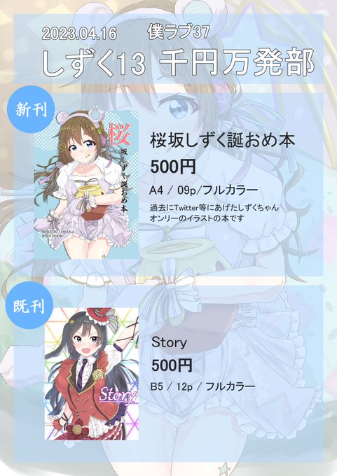 100 355 【僕ラブ新刊】 桜坂しずくお誕生日おめでとう本の表紙です! 今まで描いてきたイラストを掲載した本になります! 「しずく13」にて頒布します、お待ちしてますー #僕ラブ37 23/04/09 21:38