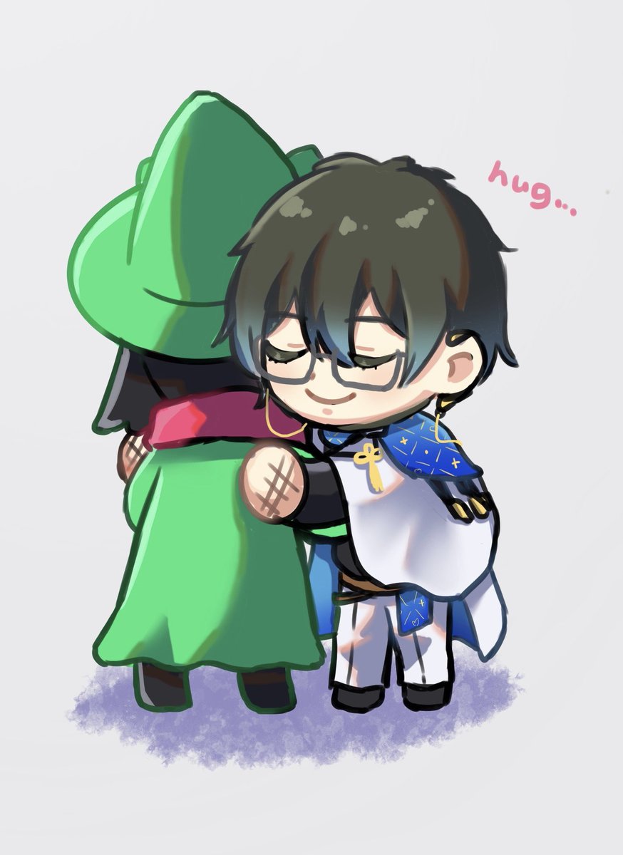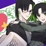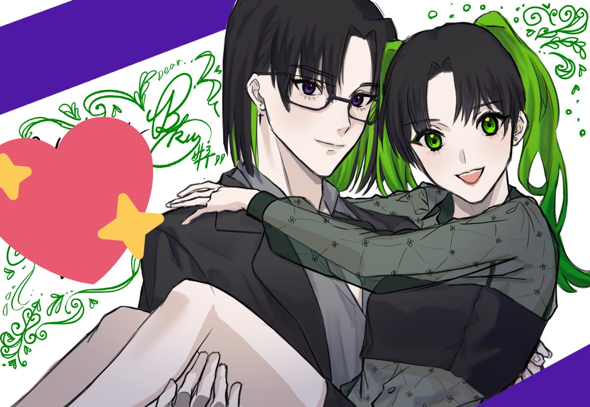 HRKTさん宅のねおんちゃんと自宅の獏くん、🖤💚のセンター分けでなんだかかわいらしい2人なので描きました❤️🔥❤️🔥