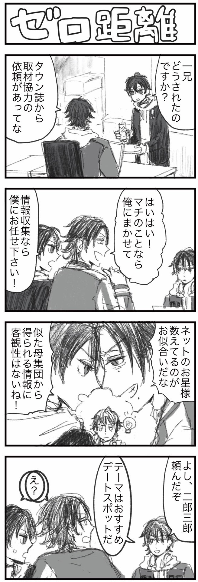 4 17 #じろさぶ深夜のお絵かき文字書き一本勝負 お題:「ゼロ距離」 時間:+1日 デートまで辿り着きませんでした 22/11/27 22:44