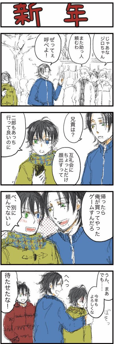 #じろさぶ深夜のお絵かき文字書き一本勝負 お題:「新年」 時間:+3h 今年も兄弟の仲良いとこたくさん見たいです