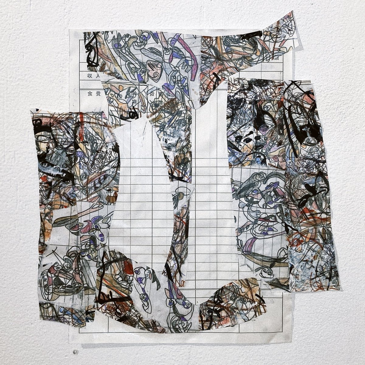しー没さんの個展を見た。流動体なのかマシンなのか生き物なのかもしくは只の落書きなのか定かじゃない不可思議な地層です。家計簿のマス目が骨組みであるなら建物をカンバスとしたストリートアートのようでもある。60点以上展示されていて一つ一つ密度も濃いので想定より見応えがあり心して観察した。
