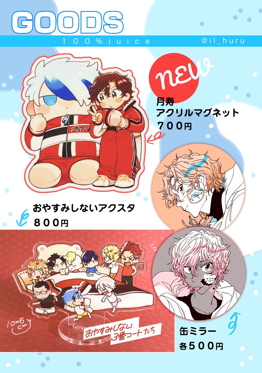 12/18🎾本&グッズのおしながきです! 3枚目は一緒に出るジルさん(@yokuneruobake )のです〜!✨ よろしくお願いします! 新刊サンプル:pixiv.net/artworks/10357… 本通販:ec.toranoana.jp/joshi_r/ec/cot…