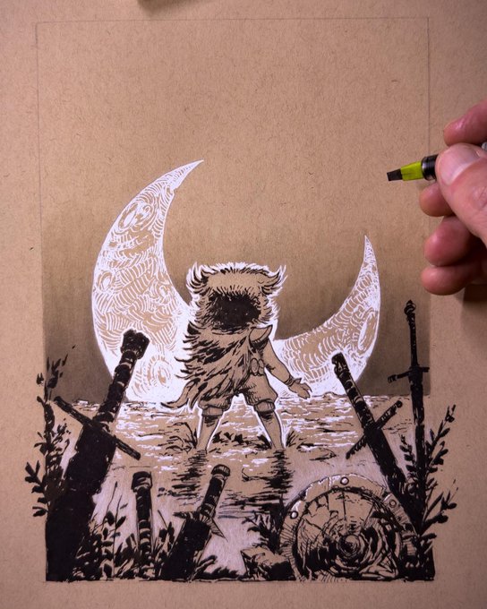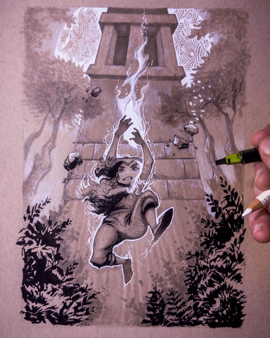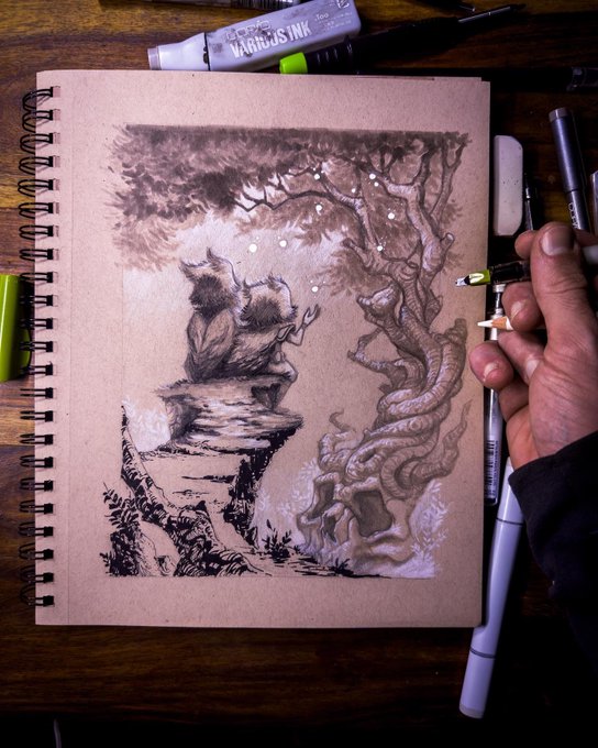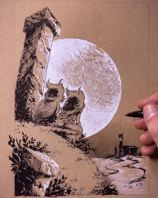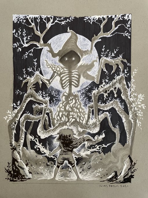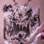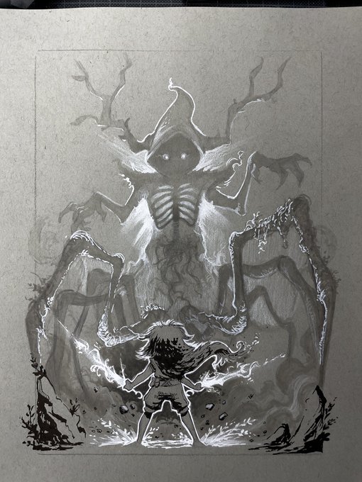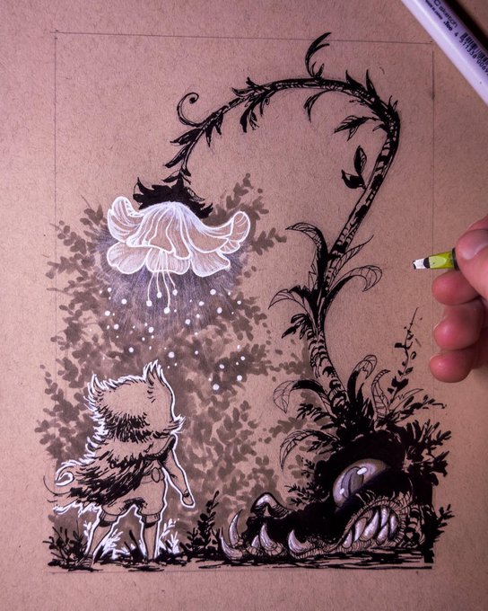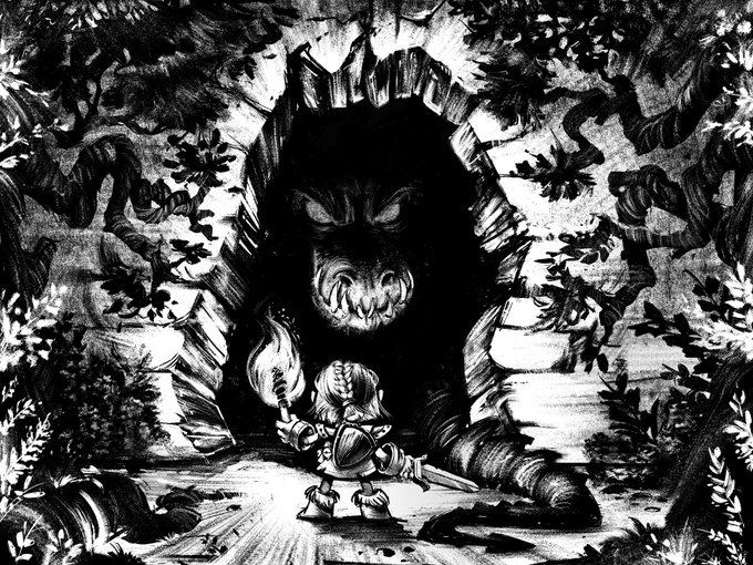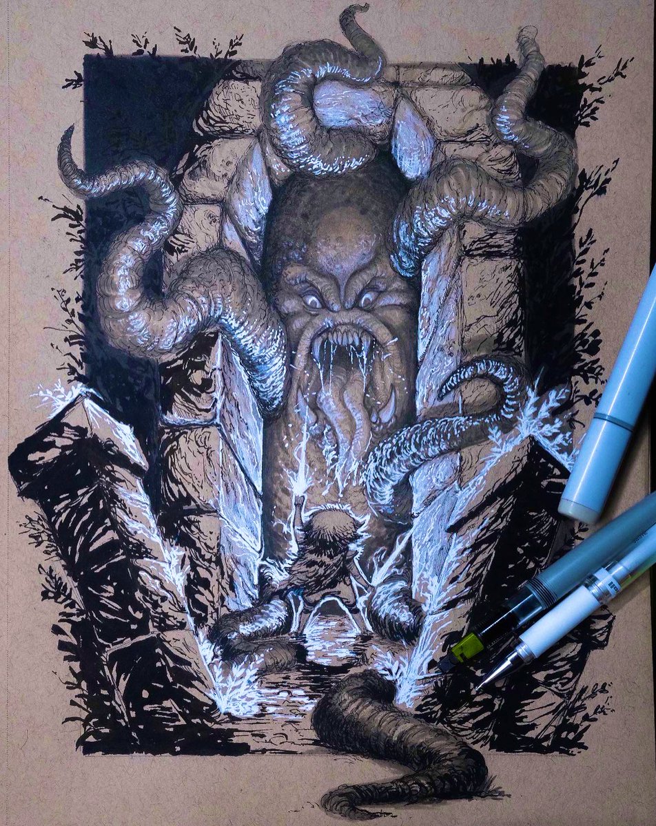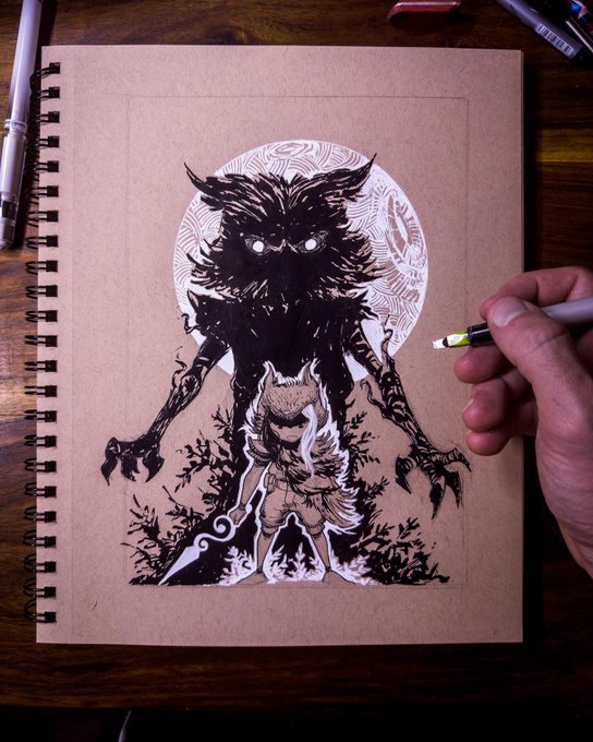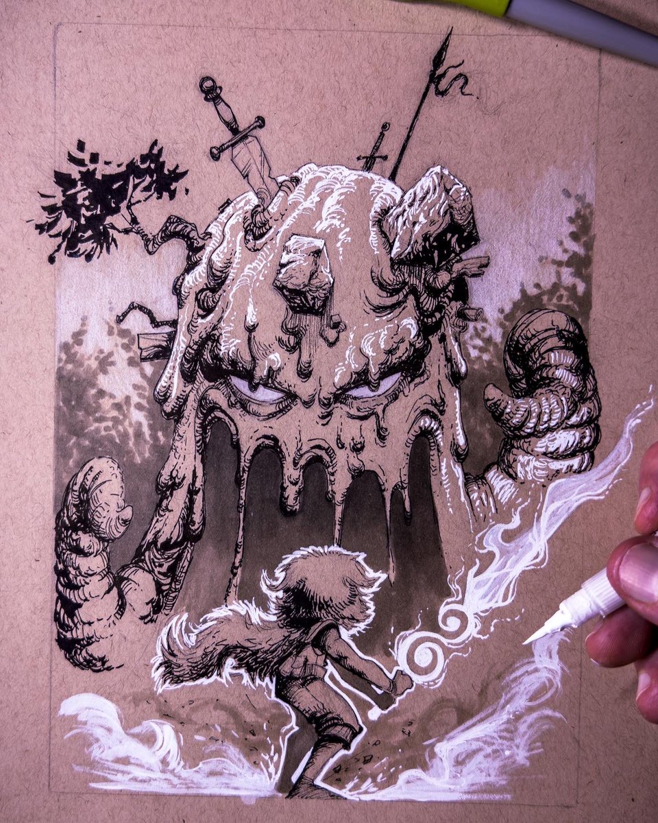 Revisiting this sketch from last Inktober, really want to darken down the background and make that monster pop out more. #ArtistOnTwitter #ink