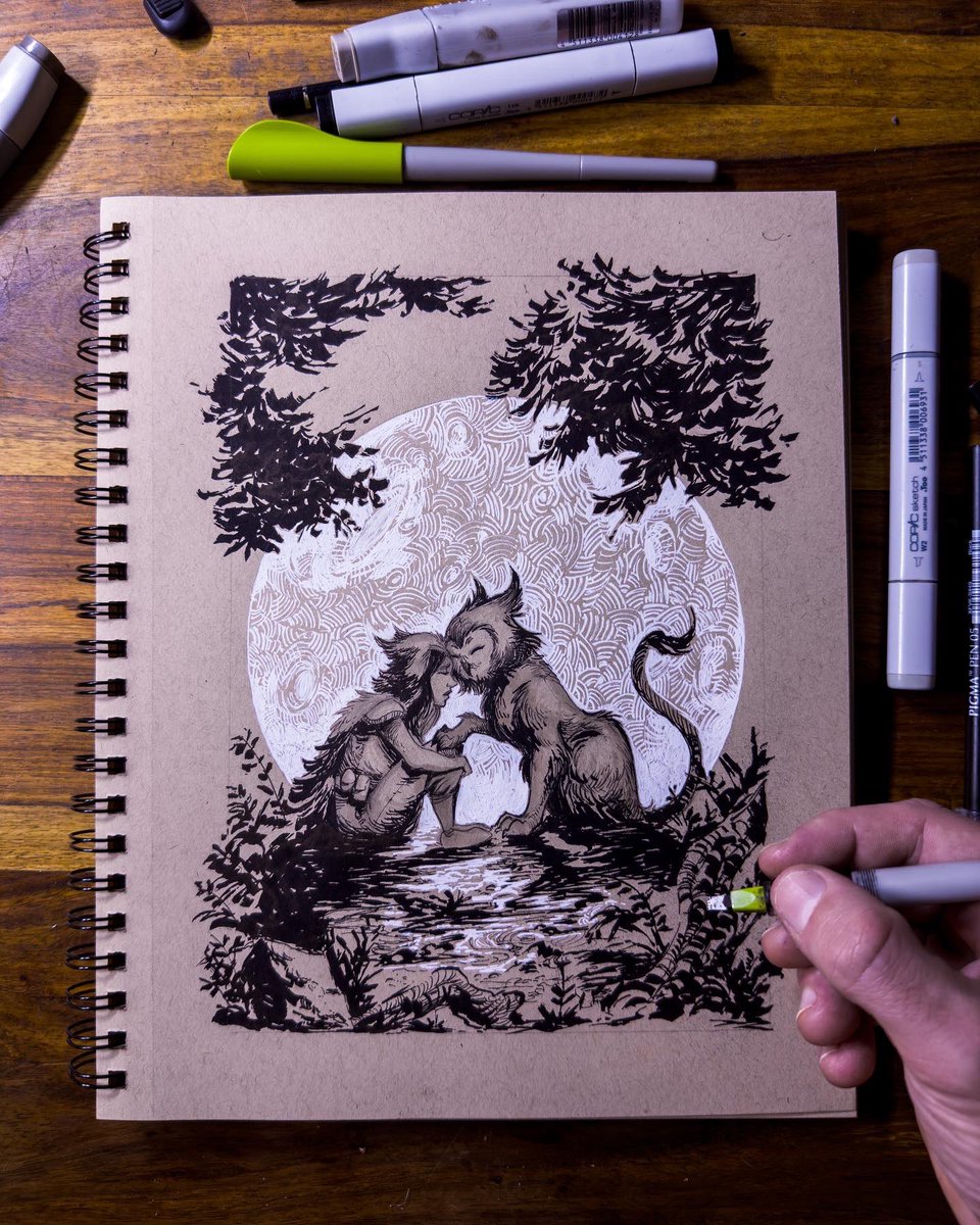 Mentioned a few days ago I was going to improve this sketch… it became a hot mess 😂 enjoy! #ink #copic #ArtistOnTwitter