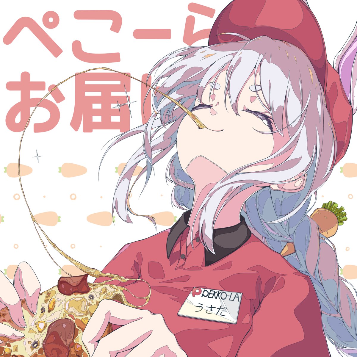 🥕ぺこーらお届けっ🍕 ピザーラさんコラボお願いします #3ヶ月上達法 5巡目。 影の付け方を丸っぽく柔らかくしてみました。食べ物の表現がまだぎこちなさある。フォントはやさしさゴシックボールドをベースに少し加筆しました。#3ヶ月でさいとうなおきを倒す #ぺこらーと