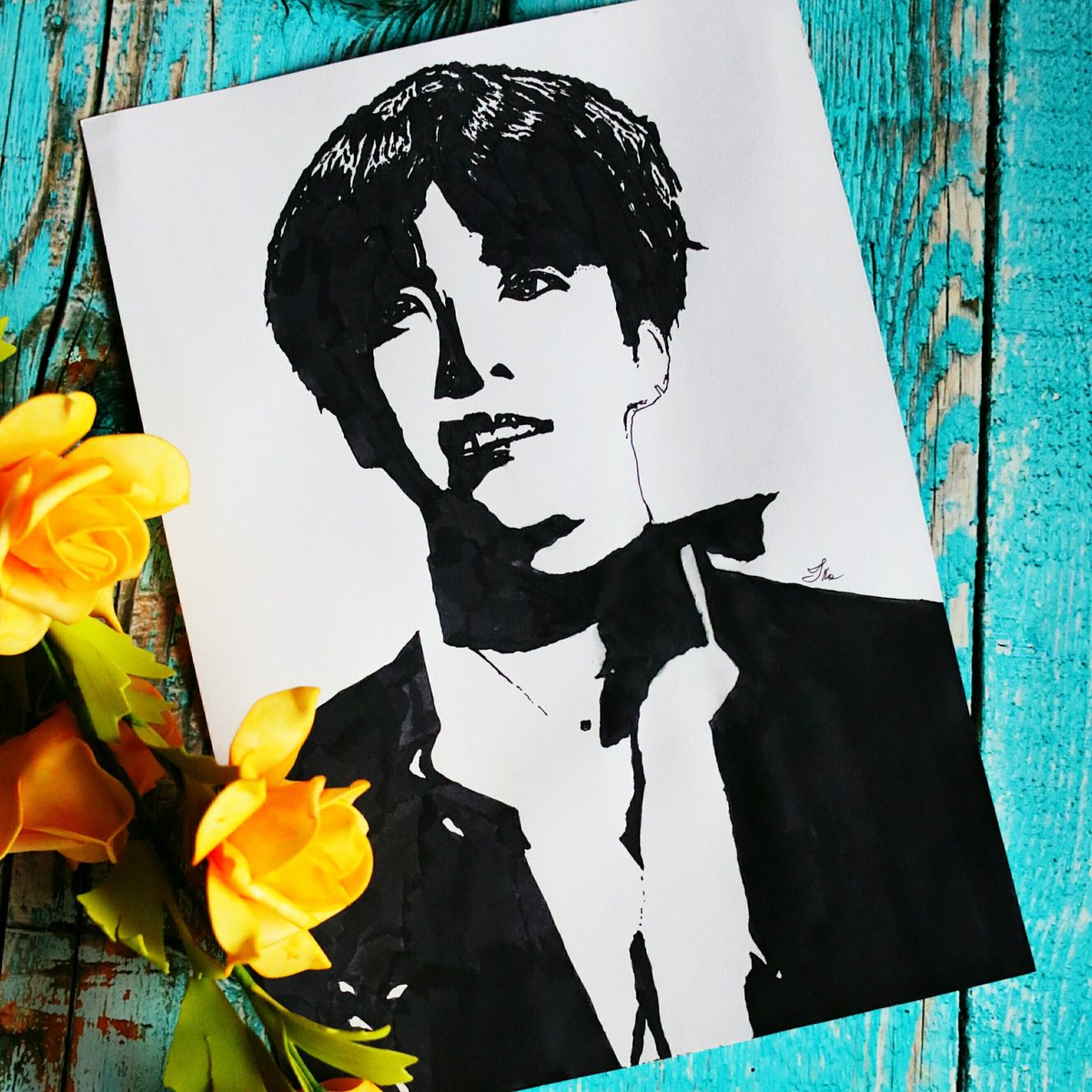 Wstawiam rysunek i prezentuję wam nowy podpis który ma w sobie literki " i l l a " #taehyung #btsfanart @BTS_twt