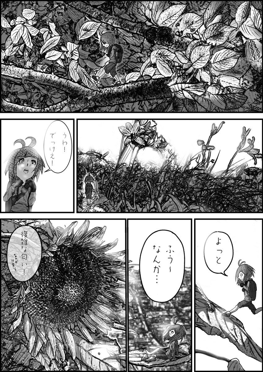 #ヤンサン漫画ギルド #ワンマンドローイング #漫画が読めるハッシュタグ 歩いてヒマワリの匂いを嗅ぎに行く話。🌻🚶♀️