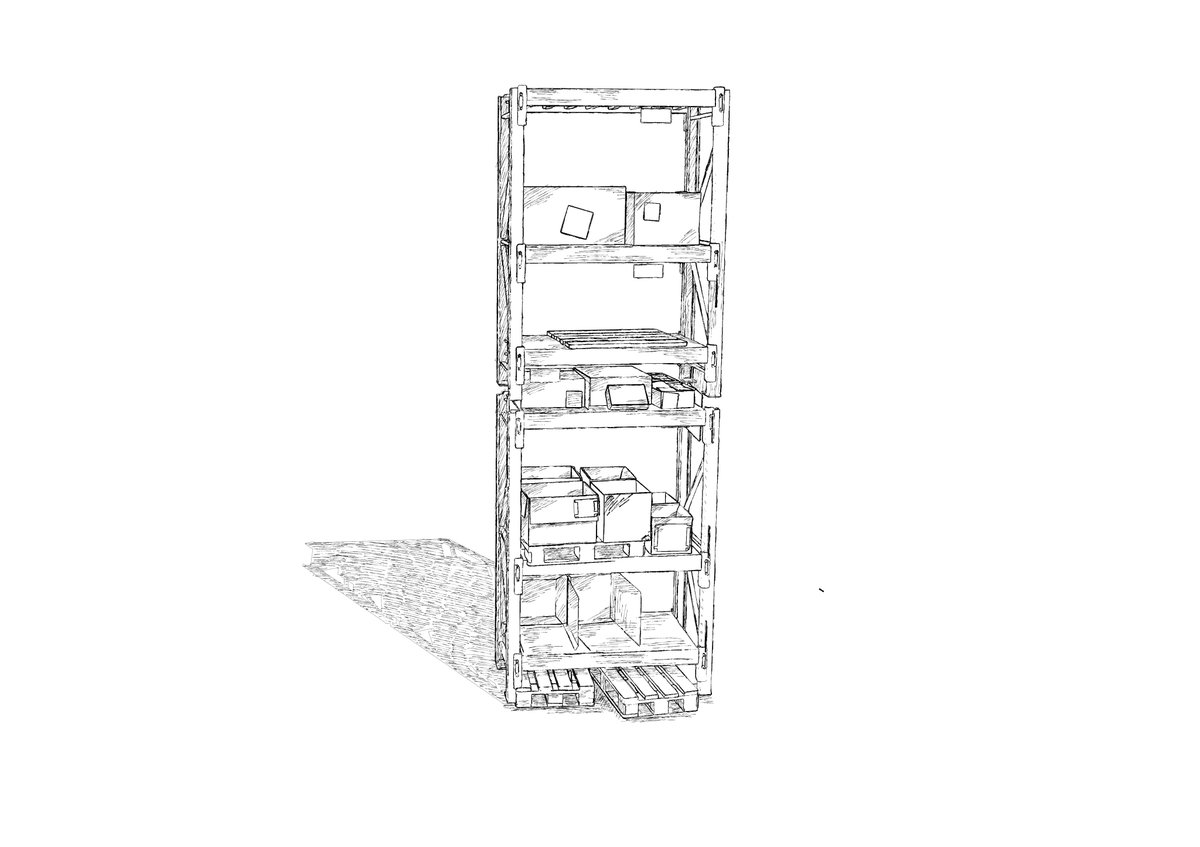 #背景 #イラスト UnrealEngineから作った工場とかにありそうな棚。 タッチは手描き。