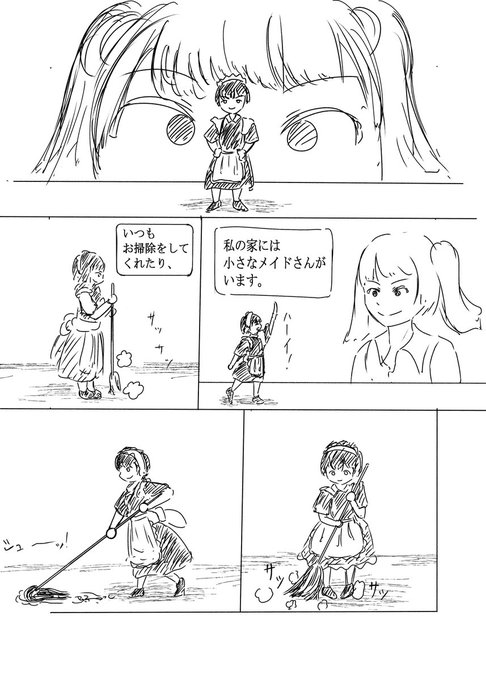 #漫画が読めるハッシュタグ #ヤンサン漫画ギルド #ワンマンドローイング 我が家の小さなメイドさん(ネームver🙇) ①衣替え編