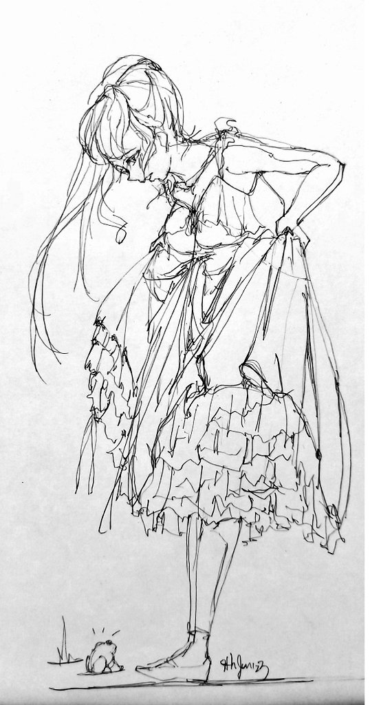 一発描き🐰75日目 フィギュアのスケッチ 15分 衣装が可愛いだけ時間かかりますね Wip #一発描き #art #drawing #模写 #illustration #イラスト #100日チャレンジ #イラスト好きさんと繋がりたい #神崎蘭子