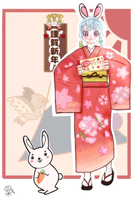 2 23 初投稿! 2日遅れですが…あけまして卯年🐰おめでとうございます #正月イラスト #絵描きさんと繋がりたい #絵柄が好みって人にフォローされたい 23/01/03 22:05