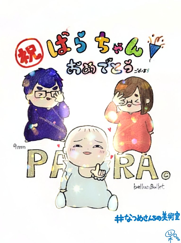 さやさん、げんさん、第一子出産おめでとうございます! ぱらちゃんが健やかに育ちますように。 #なつめさんちの美術室 #イラスト