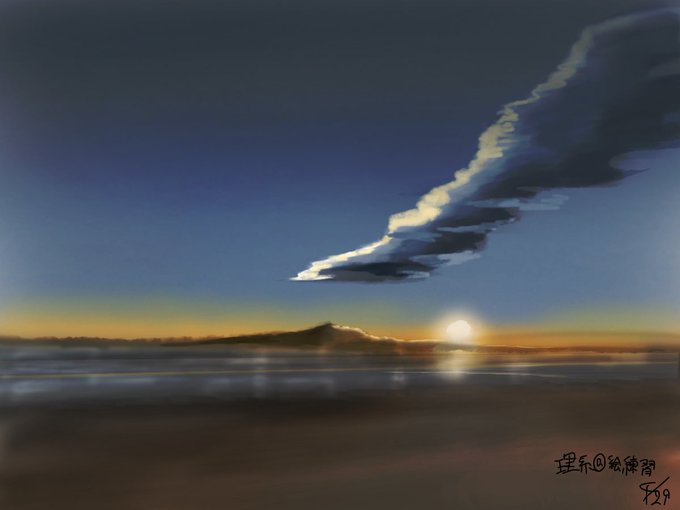 ランギトト島と朝 風景画初挑戦!背景描くのがどれだけ難しく楽しいかわかりました! 雲がそれっぽくなったような #絵描きさんと繋がりたい #アイビス民と繋がりたい #春の創作クラスタフォロー祭