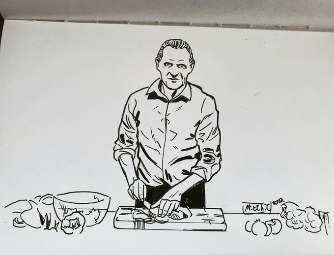 'Chef' today with Hannibal Lecter #horrorinktober #inks #inktober2020 #comics #comicart #art #inktober #fanart #drawingcomics #drawing #illustration #blackandwhite #sketch #sketches #tattoo #scary #tv #movies #horror #hanniballecter #cannibal #horrorinktober #chef