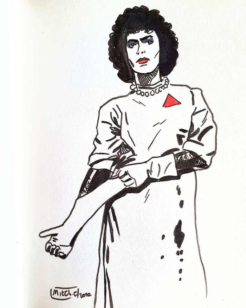 'Music' so what else in horror other than the rocky horror picture show #horrorinktober #inks #inktober2020 #comics #comicart #art #inktober #fanart #drawingcomics #drawing #illustration #blackandwhite #sketch #sketches #tattoo #scary #tv #movies #mucical #franknfurter #horror