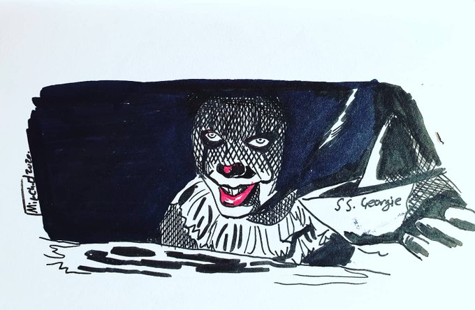 Float' Georgie 'Music' so what else in horror other than the rocky horror picture show #horrorinktober #inks #inktober2020 #comics #comicart #art #inktober #fanart #drawingcomics #drawing #illustration #blackandwhite #sketch #sketches #tattoo #scary #movies #it #pennywise