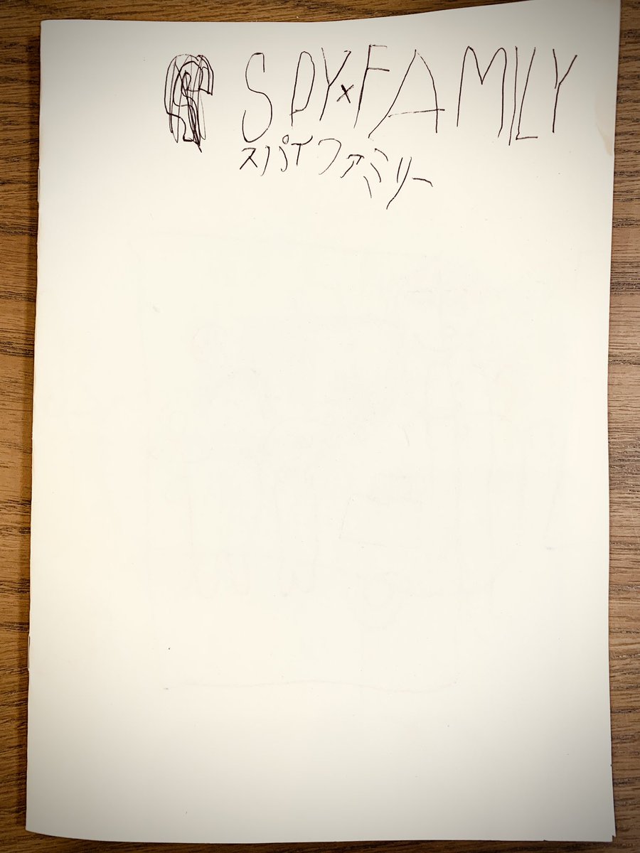息子が去年描いたスパイファミリーの本です。同人誌デビューです。 車に乗ってるのはアーニャとボンドかと思ったらオリジナルキャラだった。