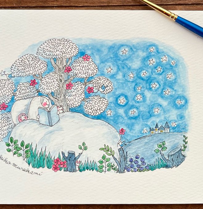 3月からあたためすぎて、やっと完成😅 #illustration #illustrator #イラスト #イラストレーター #絵 #水彩 #アナログイラスト #illustrationakko #ミリペン #木 #森 #ペン画 #夜