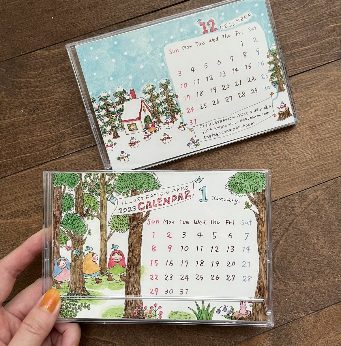 とうとう虫めがねで見るカレンダーに!? #水彩絵の具 #イラスト #絵 #ペン #イラストレーター #illustrationakko #ミリペン #akkobaum #2023年カレンダー #小さな絵の世界 #雪 #snow #christmas